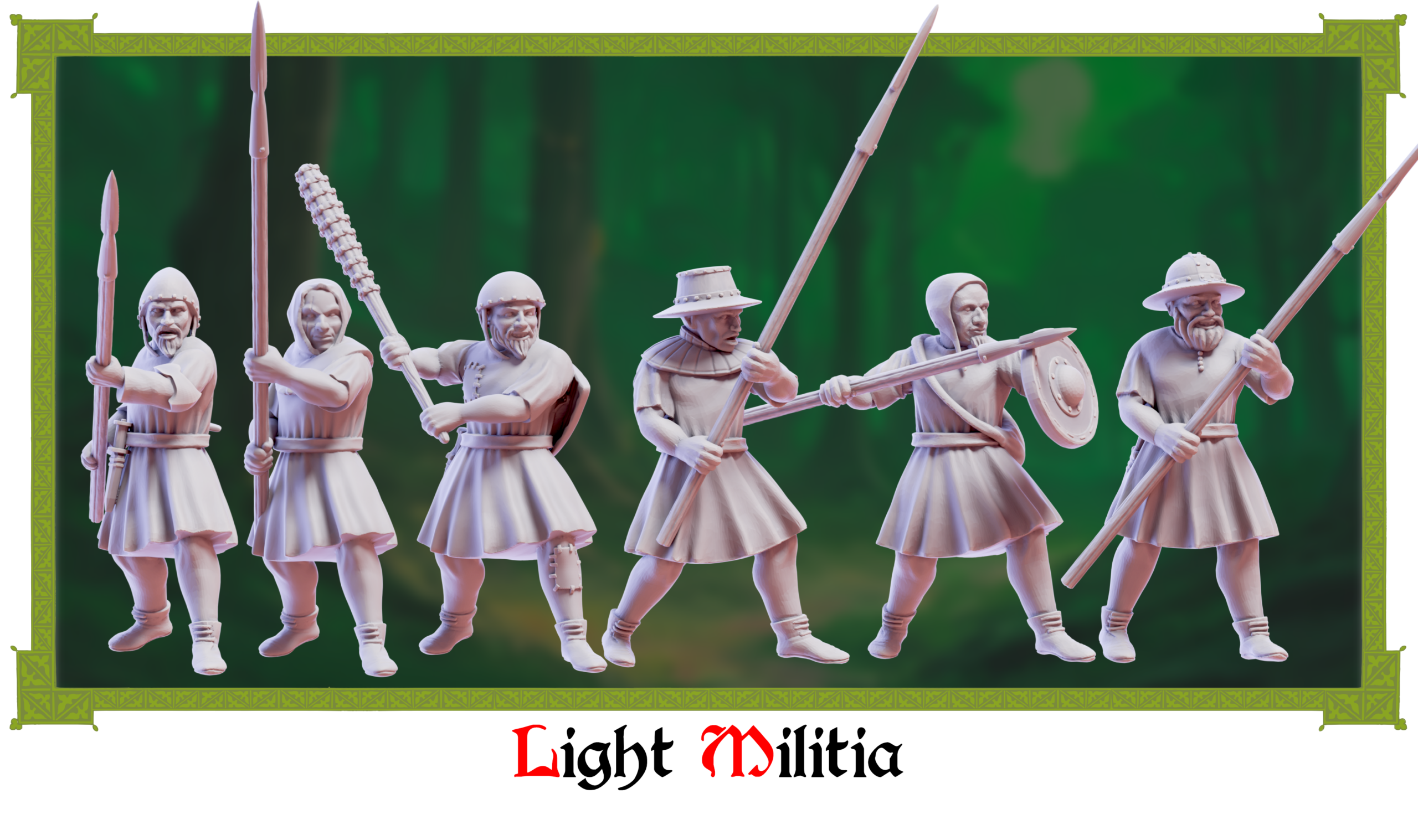 This bundle includes the villain faction, the campaign’s centerpiece Tax Wagon, and a set of forest bases so you can field a complete narrative force immediately. Like the rest of the range, the models are designed with a historically inspired early 14th-century look, suited for skirmish play, storytelling scenarios, and detailed painting.