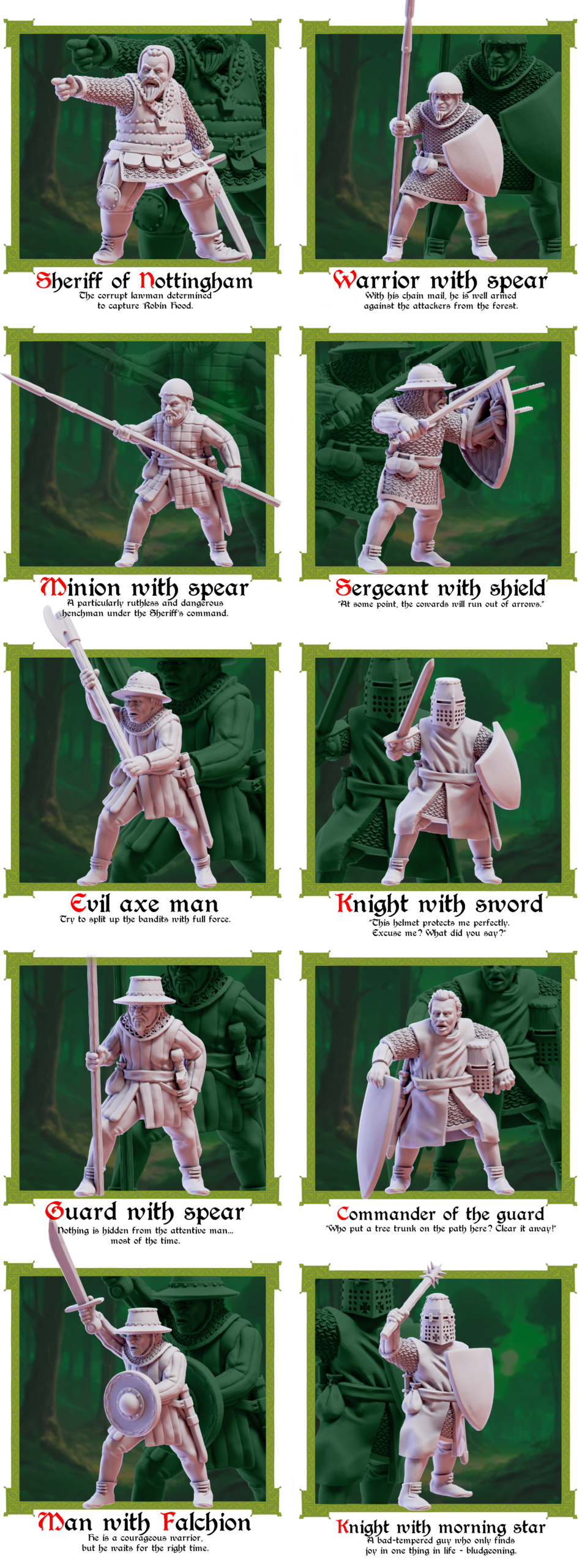 Bring the opposing side of Sherwood to your table with the Villains of Legends of the Forest II — the forces of Prince John, from nameless henchmen to well-equipped sergeants and formidable knights on foot.